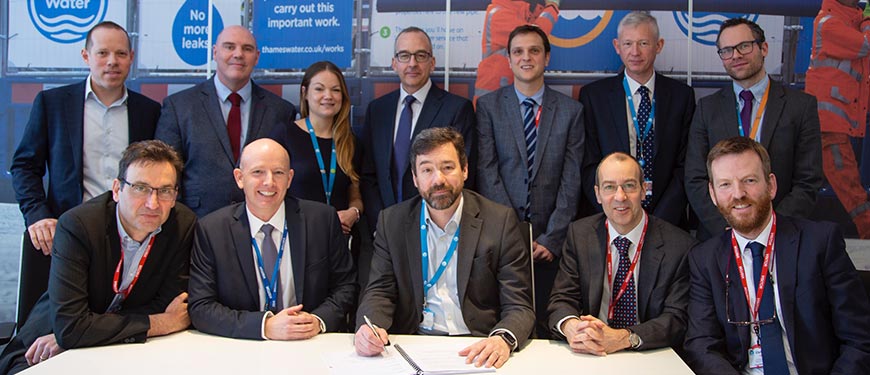 The contracts, awarded for an eight-year period, were signed at Thames Water’s head office in Reading by its chief operating officer, Lawrence Gosden, and senior leaders from each of the contract partners. It is expected to save the equivalent of 172 Olympic swimming pools of water every day.
